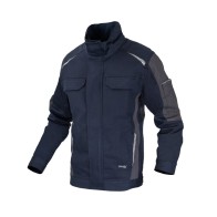 Ergonomiško dizaino darbinis švarkas Švarkas pagamintas iš Flex audinio, sudaryto iš 98% medvilnės ir 2% Spandex – tamprus, komfortabilus ir gerai kvėpuojantis audinys, užtikrinantis judėjimo laisvę ir patogumą. Apykaklė, pečių sritis, rankogaliai ir švarko apačia yra sustiprinti Canvas pynimo audiniu, kuris suteikia papildomą atsparumą dėvėjimui.