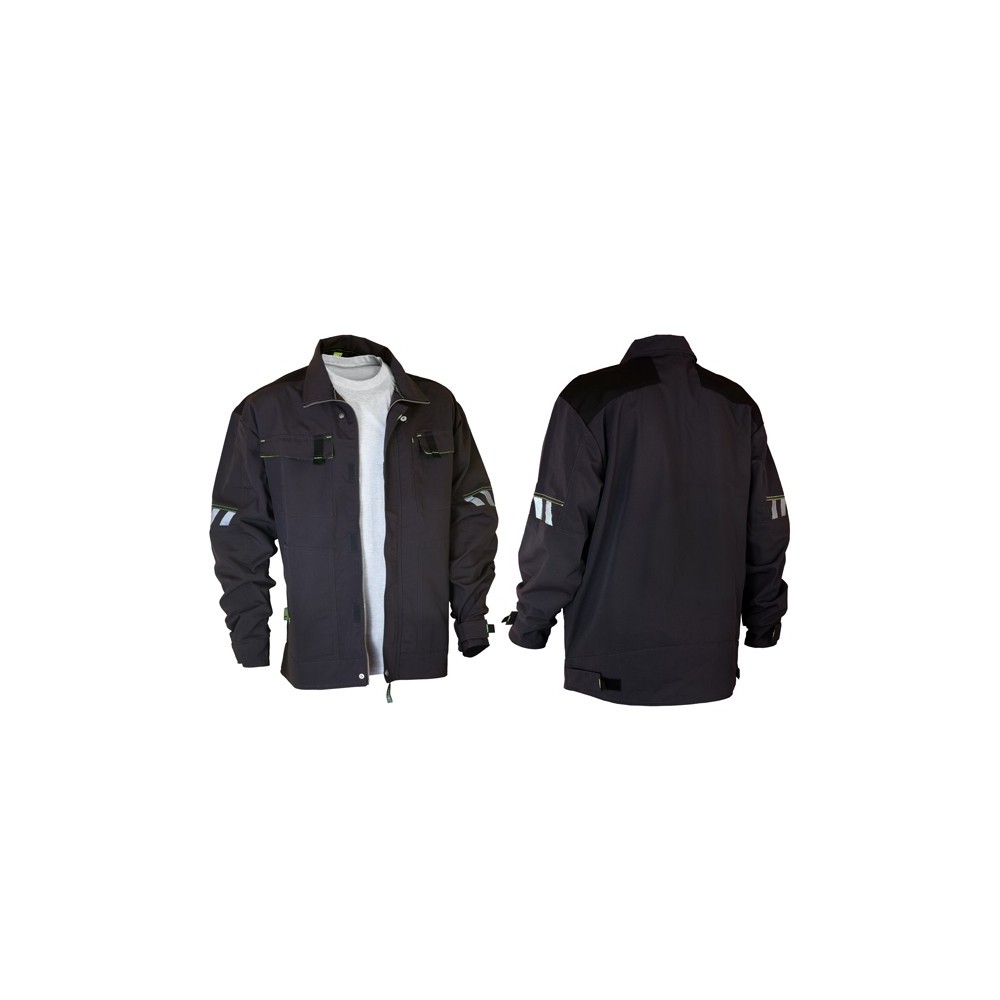 Švarkas užsegamas metaliniu užtrauktuku paslėptu po atvartu užsegamu trimis velcro juostomis ir metalinėmis spaudėmis viršuje ir apačioje. Pečių sritis sutvirtinta specialiu OXFORD 600D audiniu. Krūtinės srityje yra dvi išorinės kišenės uždengtos atvartu, užsegamu velcro juosta. Kairės pusės kišenė turi papildomą skyrių rašikliui. Juosmens srityje dvi talpios kišenės užsegamos užtrauktuku. Švarko viduje dešinėje pusėje yra kišenė užsegama velcro juosta. Švarko nugara yra prailginta, o plotis reguliuojamas velcro juostų pagalba. Rankovių srityje yra įstrižos 2cm pločio atšvaitinės juostos. Rankogalių plotis reguliuojamas velcro juostų pagalba. Kontrastinės siūlės, įtvirčiai ir ryškūs akcentai gaminiui suteikia inovatyvumo.